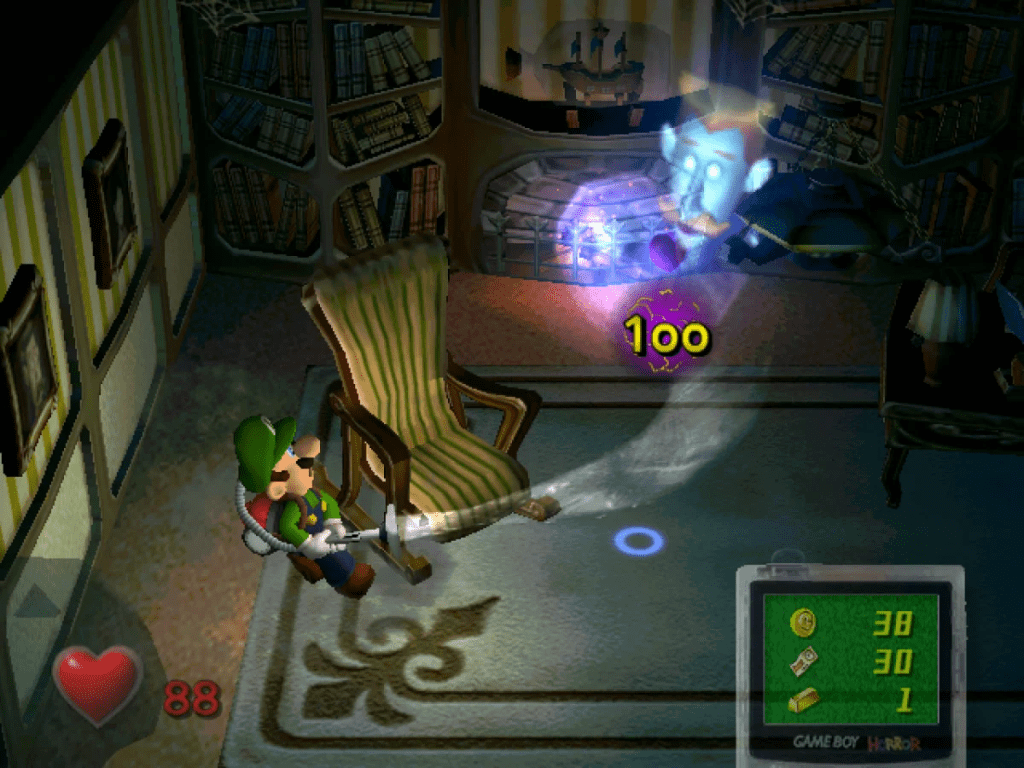 The eponymous character is notified that he has won his own mansion in a contest he never entered, and so he and brother Mario agree to meet up at Luigi’s new digs. Not far inside the sinister and spooky-looking estate, he’s attacked by ghosts and saved by the pint-sized Professor E. Gadd, who tells Luigi he witnessed Mario disappearing into the building along with the spirits he had converted into paintings and which somehow escaped. The mad scientist equips Luigi with the Poltergust 3000 vacuum cleaner and a Game Boy Horror and sends him off into the manor to find his brother and capture the ghosts inside the Poltergust’s containment chamber. Luigi learns that King Boo manifested the mansion in order to catch both him and Mario, and must defeat the inhabitants of the haunted abode in order to reach King Boo and rescue his captured brother.