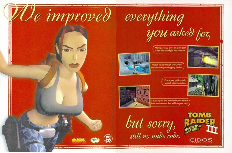 In fact, this whole discussion is entirely reminiscent of one concerning the 90s’ most popular female protagonist in games, Lara Croft. The topic of the quality of her face and body as both negative and positive-only-in-terms-of-sexuality is, in the end, a distraction and deflection from the conversation about the quality of the actual game. One element of her original design which received plenty of player focus was her large chest, a design choice which was an accident at first: “While making test adjustments to her girlish figure, a slip of his mouse turned an intended 50% increase to her breast size into a 150% gain. It met with instant approval from the team before he could correct it.” Eidos and Sony made that central to marketing the game, and so for many players, it became integral to her design. After the series rebooted in 2013, large sections of fan discussions online centered on her breast size once again, not whether the gameplay was an improvement or the changes to her character made for a more engaging story. Instead of talking about the merits of Lara Croft, we have to talk about her design and whether sexiness should be inherent in female video game characters.